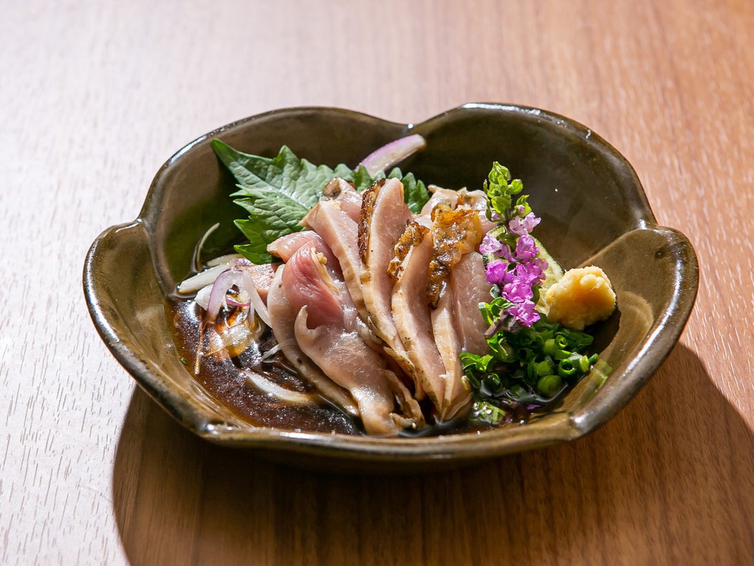 焼鳥祐では、自社ブランド”六角大魔王”を中心にさまざまな地鶏をお楽しみいただけます。お酒のお供にぴったりの焼鳥、鮮度が良いからこそご提供できる『鶏造り盛合わせ』や『鶏のたたき』などがラインナップ。他にも揚げ物・焼き物・ご飯ものなど多彩な鶏料理をご用意しております。